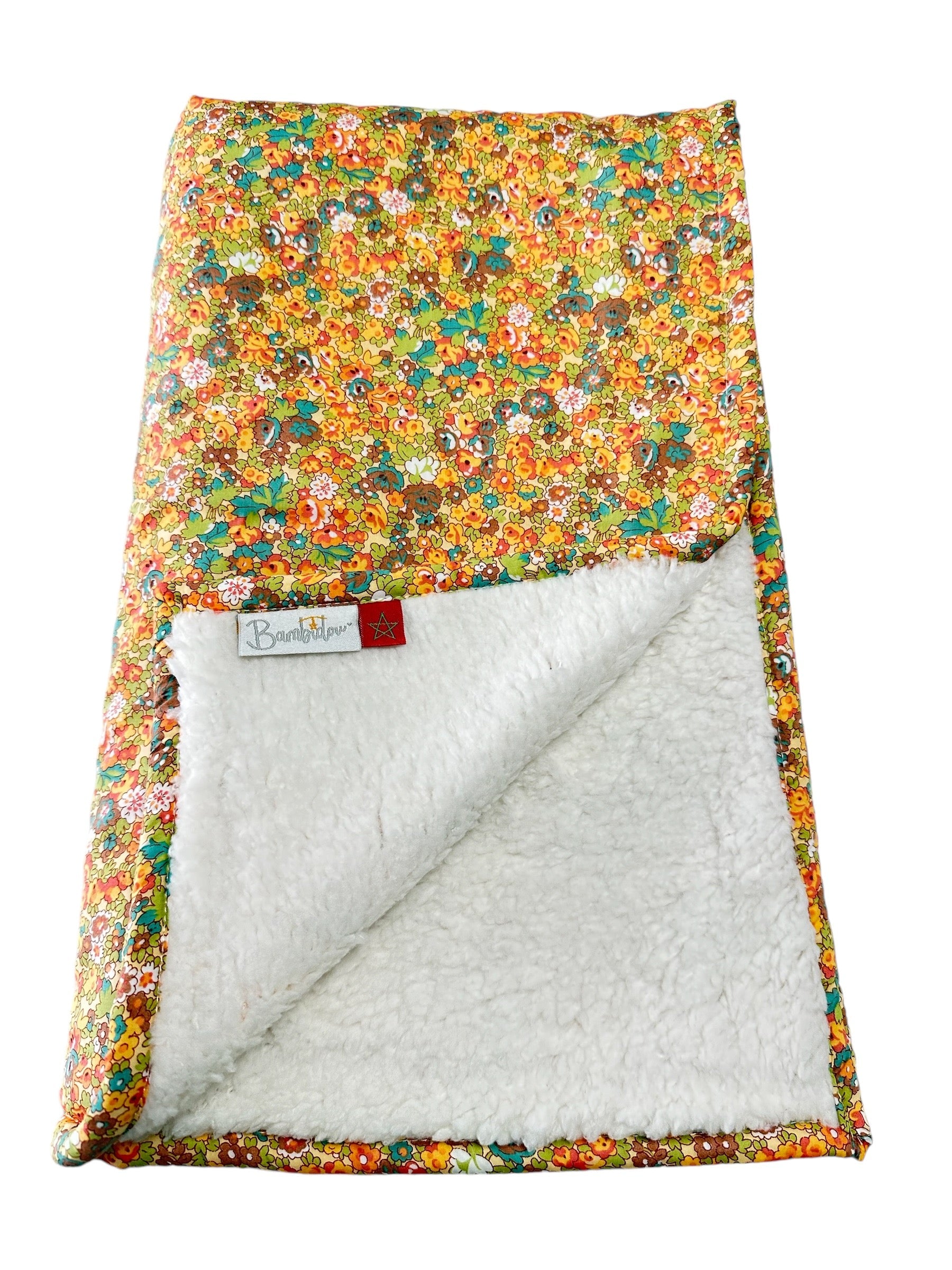 La couverture Bambidou est idéale pour réchauffer bébé lorsqu'il dort mais aussi lors de toutes ses promenades. Fabriquée dans un tissu Liberty London de la collection Emma Orange en pur coton Bio.