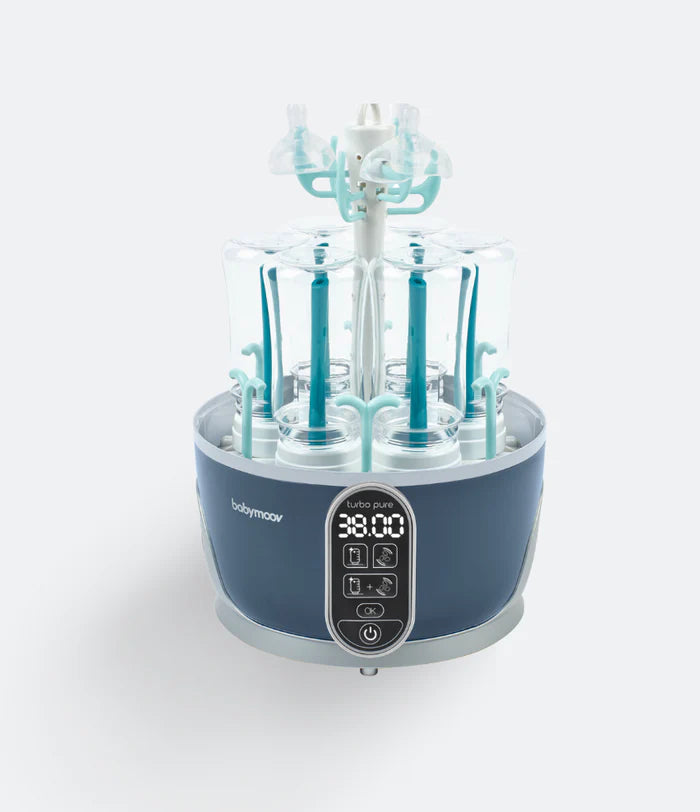 Le stérilisateur biberon et sèche biberon Turbo Pure, est le seul et unique à assurer une hygiène parfaitement maîtrisée de vos biberons dans un environnement stérile. Le Turbo Pure utilise une technologie novatrice brevetée issue de la recherche du service innovation Babymoov France.