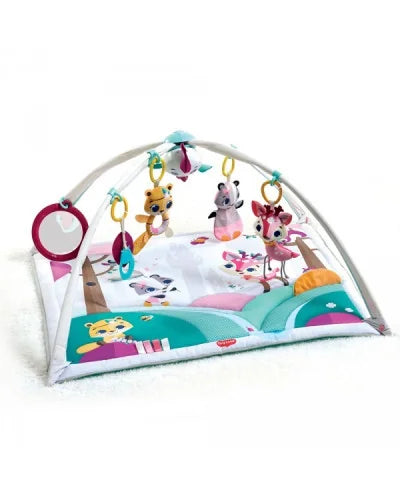 Le tapis d éveil est un moyen pratique pour favoriser la stimulation visuelle et auditive de votre enfant, avec des jouets électroniques interactifs. Ultraconfortable, le Plush Gymini Tiny Love propose un décor élégant et plaisant avec les images des princesses de la famille Tiny. Les arches sont réglables, et les côtés rembourrés apportent un maximum de sécurité à votre enfant. Le Plush Gymini PRINCESSE de Tiny Love est parfait pour distraire votre bébé durant vos promenades.