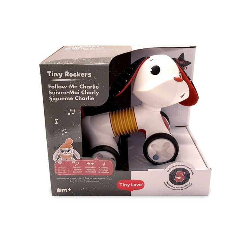 Le Tiny Rockers Follow Me Charlie est le compagnon idéal pour inciter l’enfant à passer du temps sur le ventre et à ramper.