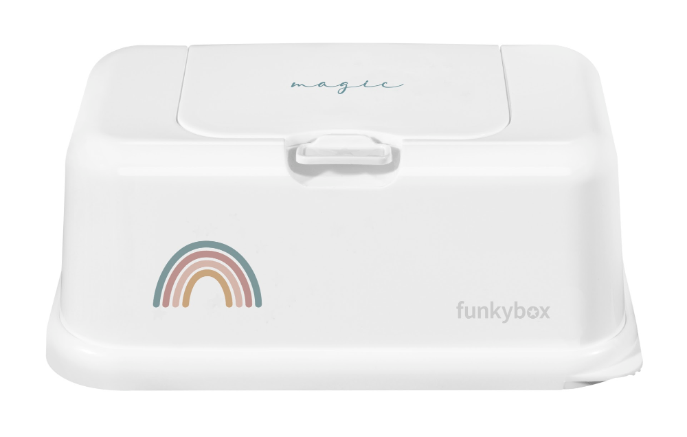 Pratique et funky la boîte à lingettes Funkybox est une boîte de protection pour lingettes et d'hygiène qui évite à ces dernières de sécher entre deux toilettes de bébé.