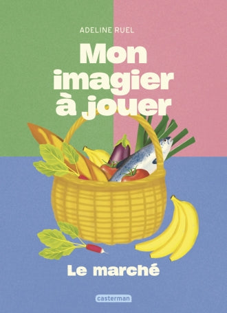Un imagier à jouer, pour découvrir les produits du marché, de la poissonnerie, de la fromagerie, de la boulangerie et du fleuriste.