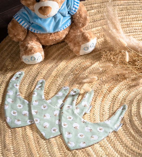 Pack de 3 Bavoirs - Bandana - Mouton vert