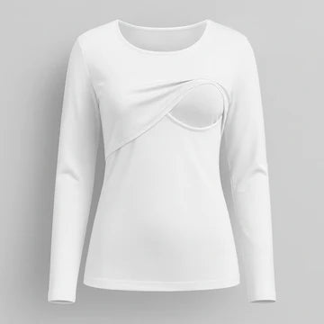 Coupe féminine et polyvalente : à porter seul ou sous un pull pour un allaitement facile.