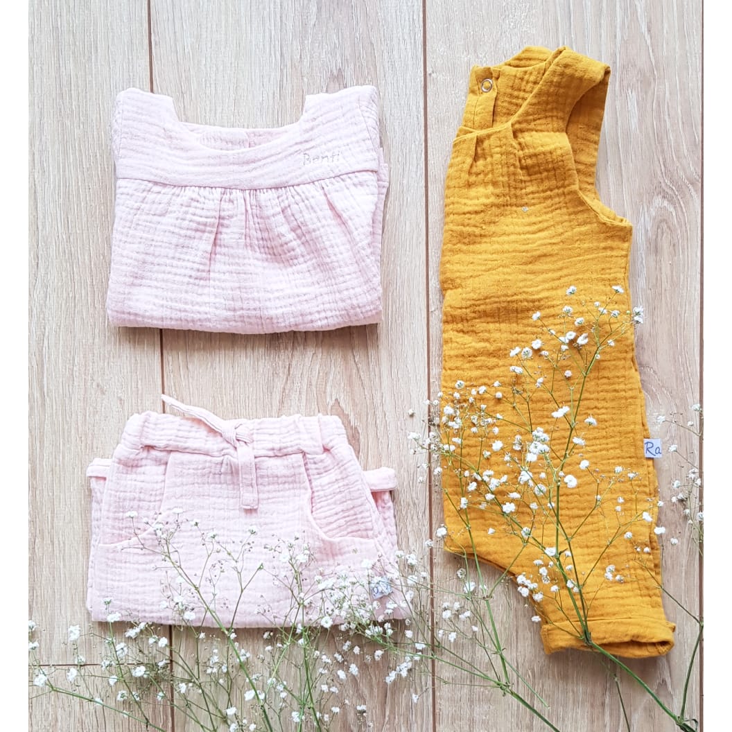 Blouse fille en gaze pur coton doublé, une jolie matière gaufrée et légère.