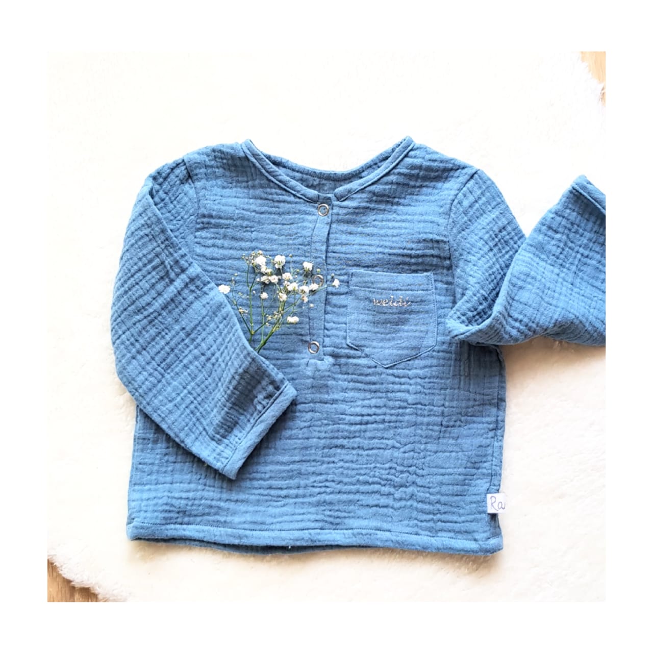 Blouse fille en gaze pur coton doublé, une jolie matière gaufrée et légère.